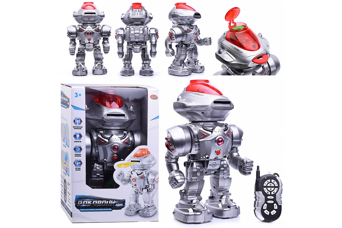 Управление игрушкой осуществляется нажатием соответствующих кнопок на ИК-пульте. Во время игры робот светится в области головы и груди.