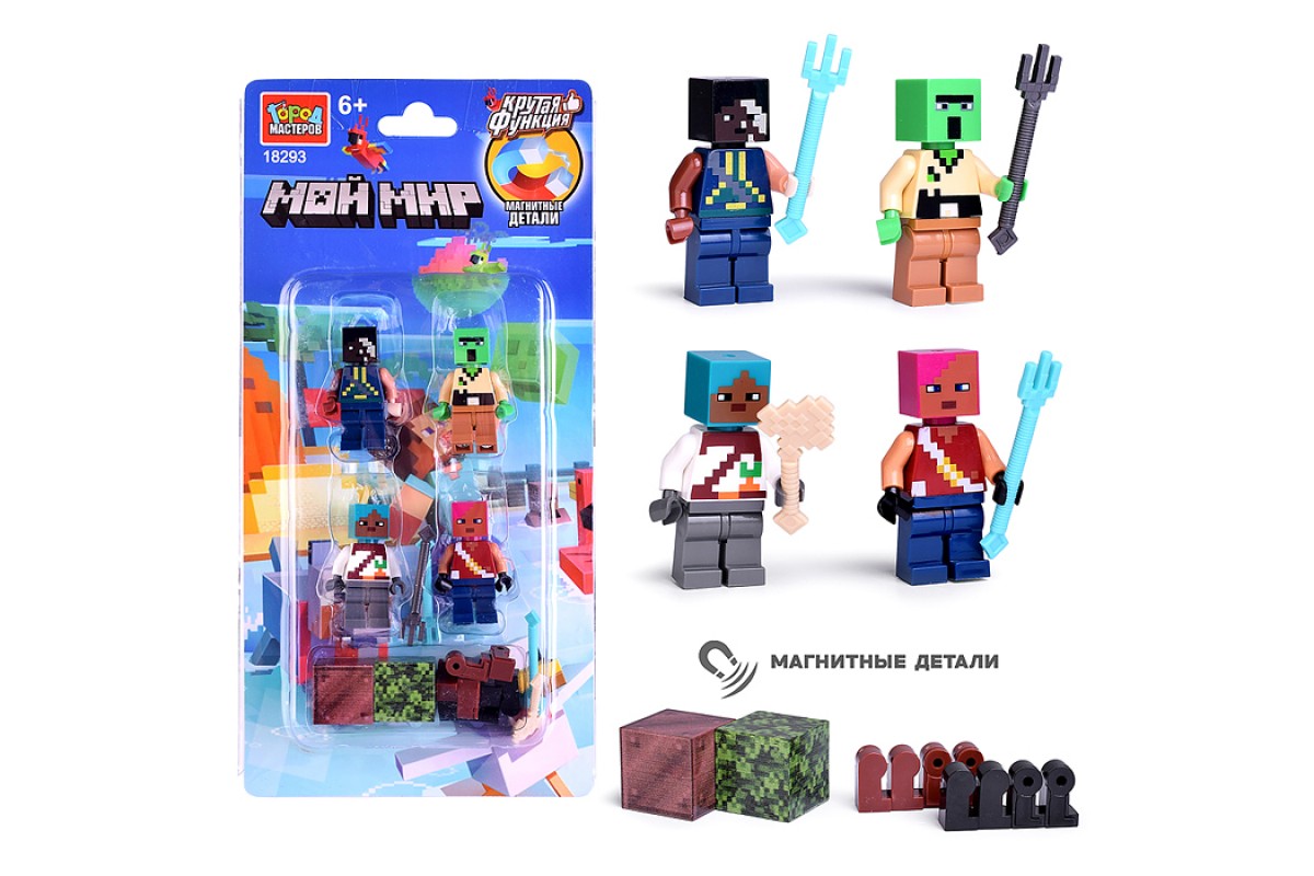Фигурки для конструктора "Мой мир" 4шт (с магнитными кубиками)