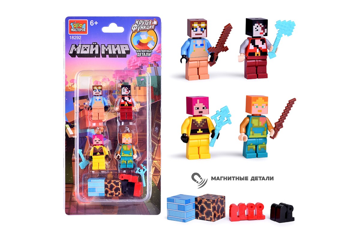 Фигурки для конструктора "Мой мир" 4шт (с магнитными кубиками)
