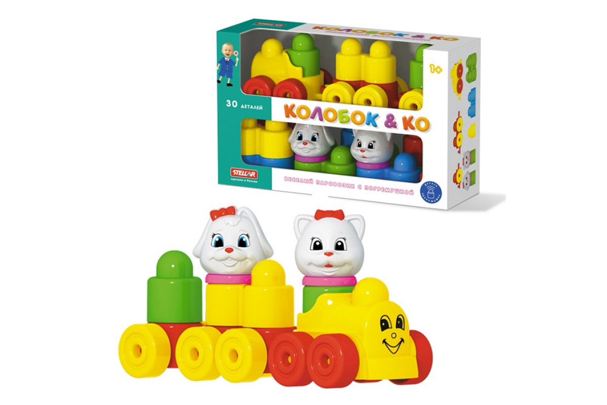 Конструктор "Колобок и компания" 30 деталей с паровозиком
