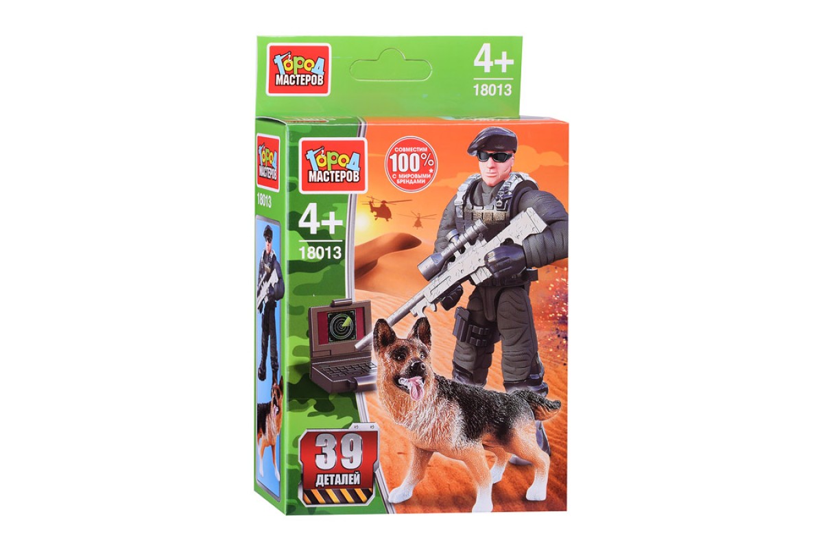 С помощью этого занимательного конструктора ребёнок может собрать реалистичную фигурку солдата с оружием и собачкой. Набор вдохновит малыша на новые увлекательные сюжеты для игр и станет гордостью его игрушечной коллекции.
