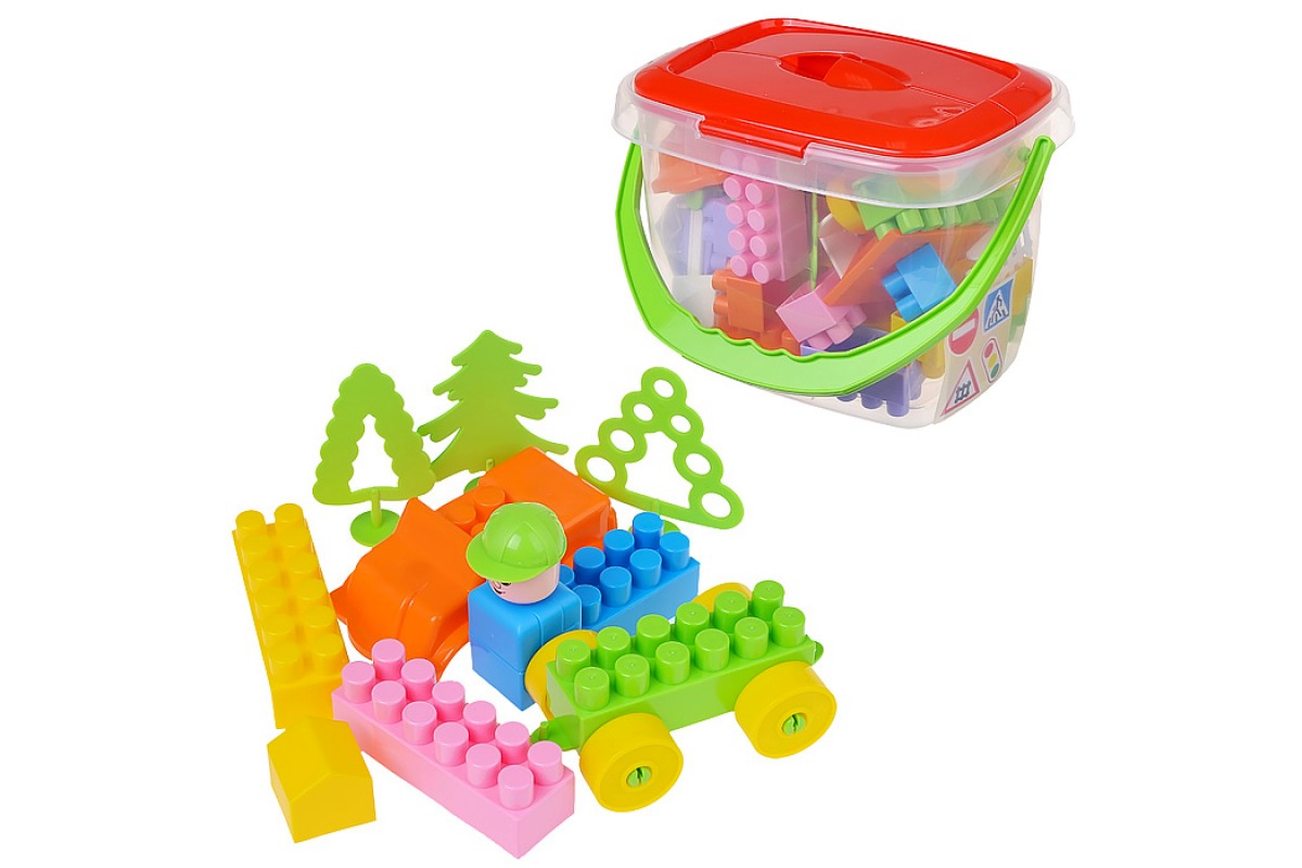 • В наборе: ведёрко (размер: 24х19х18 см.) и 52 элемента.