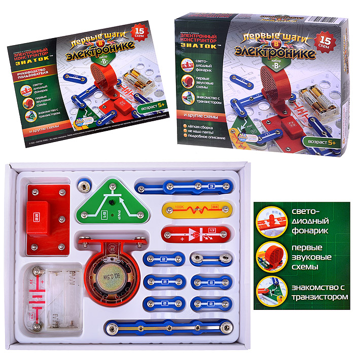 Электронный конструктор "Первые шаги в электронике"Набор А" (15 схем)