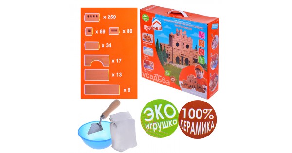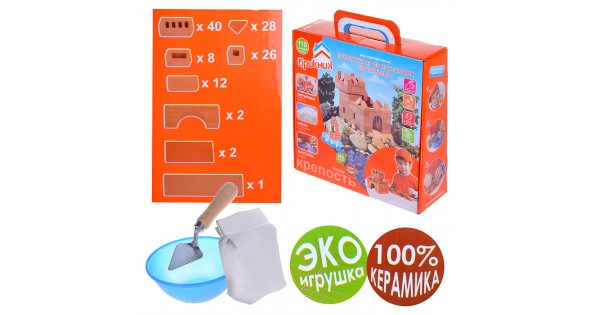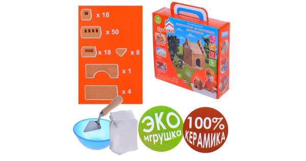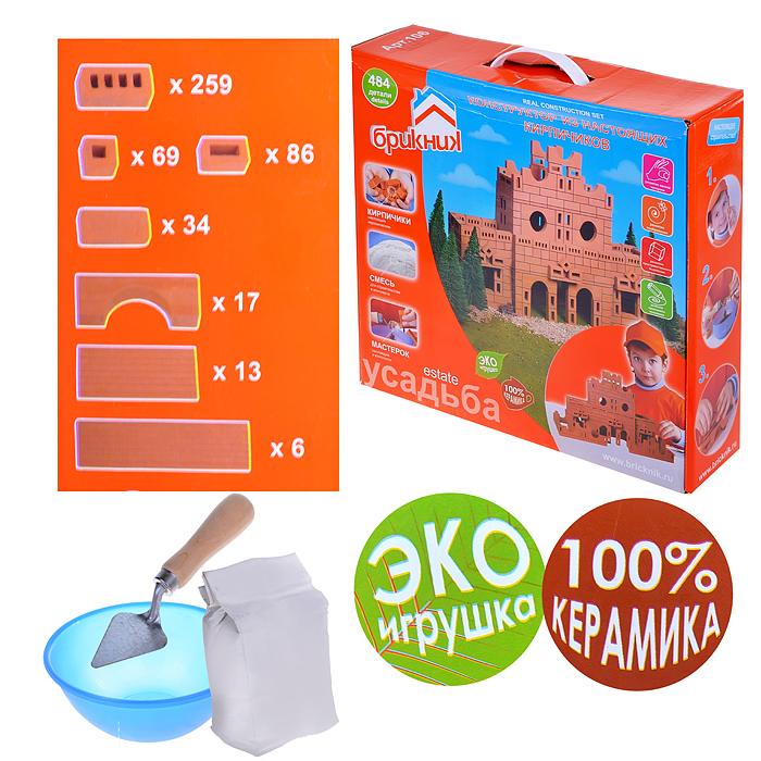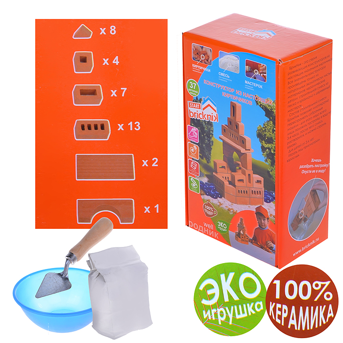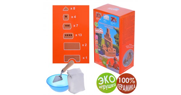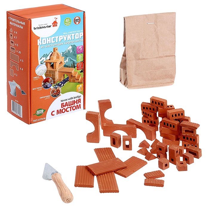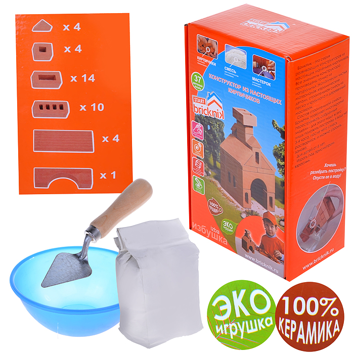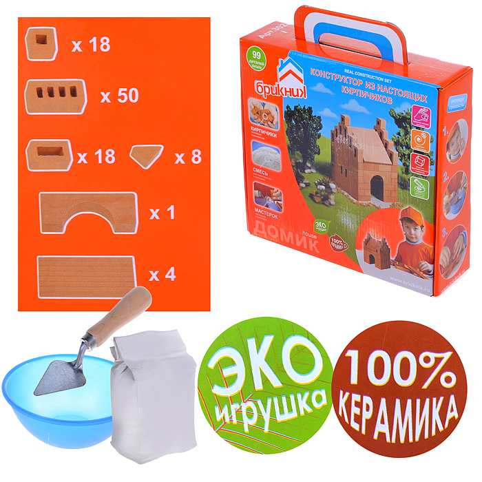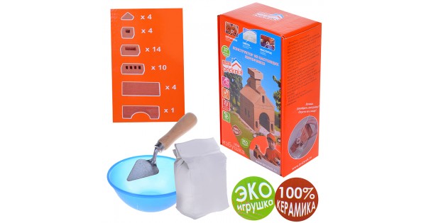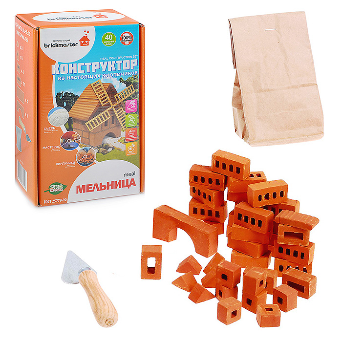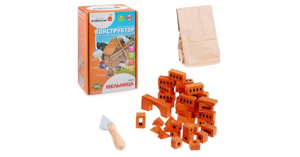 Конструктор из кирпичиков - отличная практика для будущего строителя. Здесь все по настоящему: кладочный раствор, мастерок, керамические кирпичи. С данным конструктором ребенок обязательно получит первые навыки большого строительства.