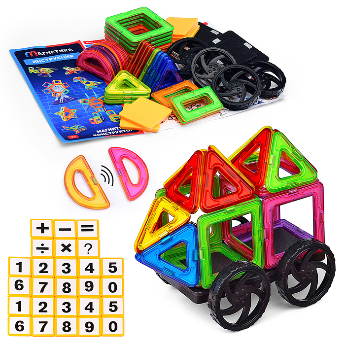 Конструктор магнитный, большой размер дет. (58 дет.), в пакете