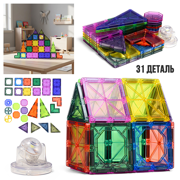 Конструктор магнитный "Замок" с прожектором (31 дет.) в коробке