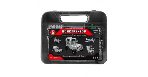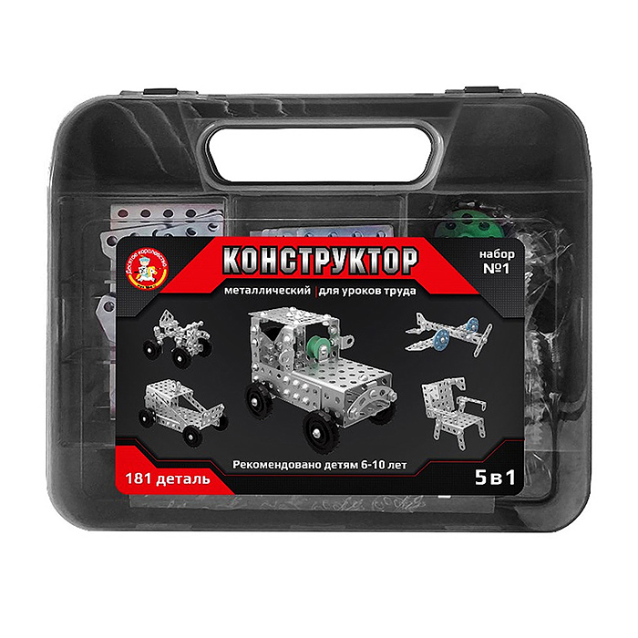 Конструктор металлический для уроков труда 5 в 1 №1 в пластиковом чемоданчике