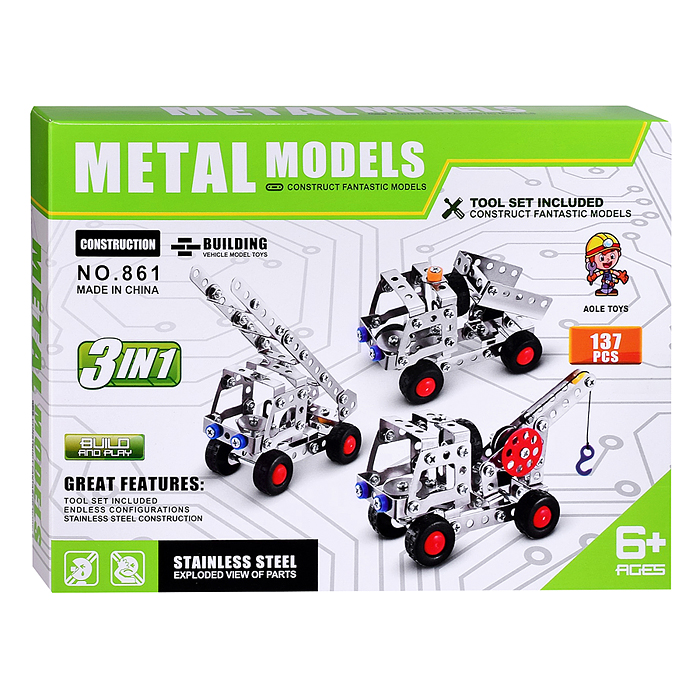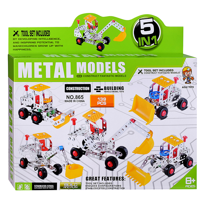 Конструктор "Строительная техника" 5 в 1 (139 дет.) металл, в коробке