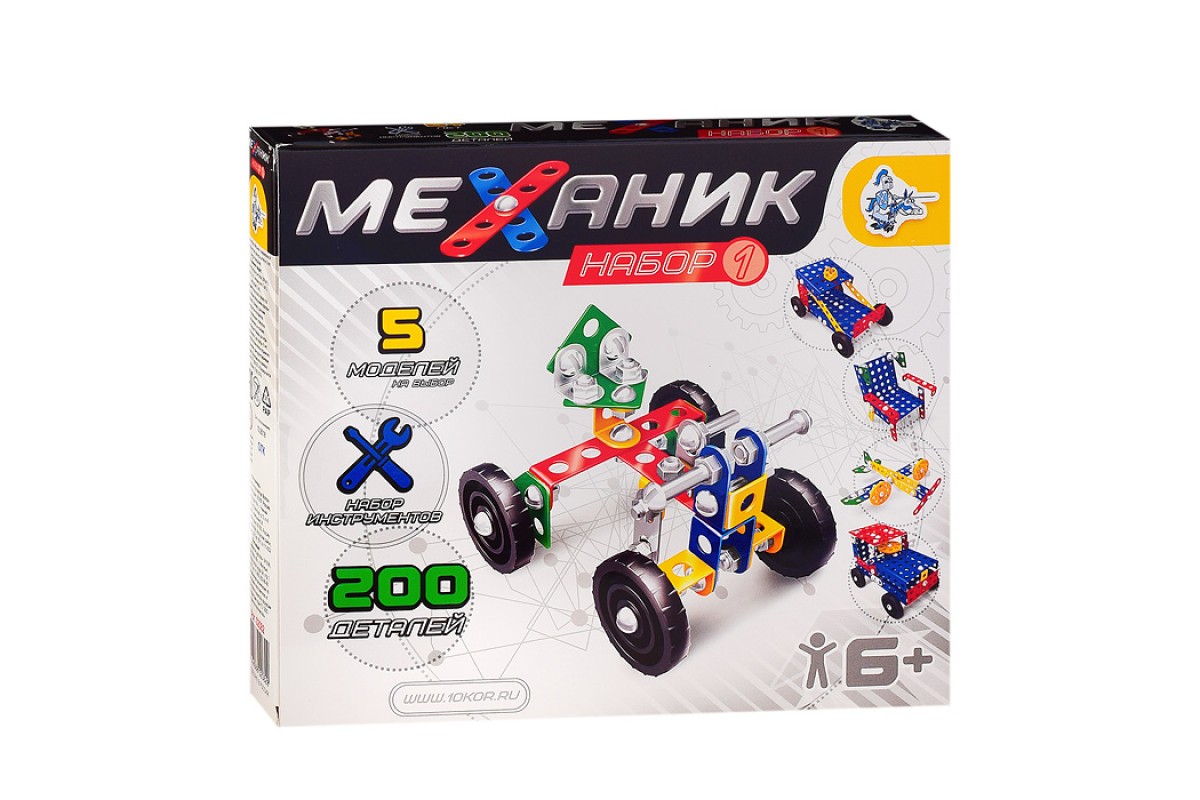• В комплект входят: детали конструктора из металла - 200 шт., отвёртка - 1 шт., гаечный ключ - 1 шт., инструкция.
