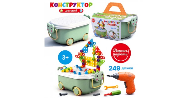 Конструктор "Болты и Гайки тип 5 (32 болта и 32 гайки, 16 карточек с заданиями) в контейнере