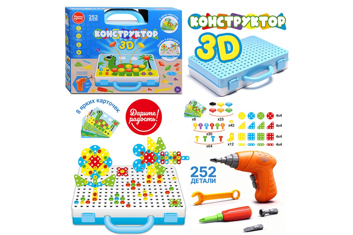 Конструктор "Дарите радость" 3D -252детали 6в1, в коробке