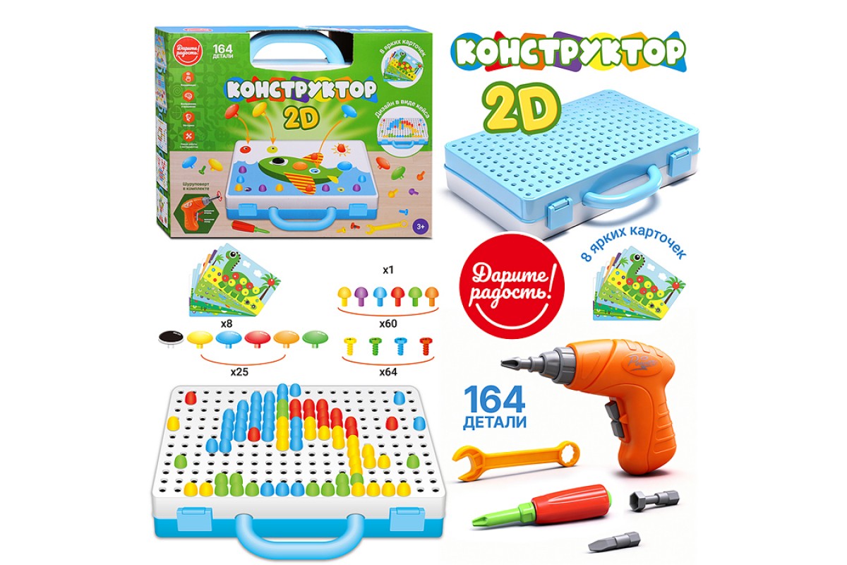 Конструктор "Самолётик" 2D 5в1, в коробке