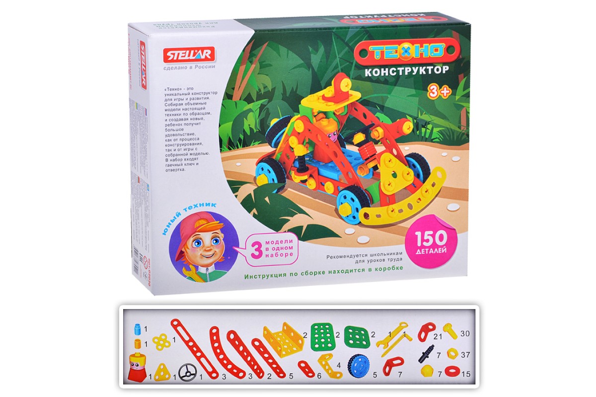 • В наборе: 150 деталей конструктора разных форм, цветов и размеров.