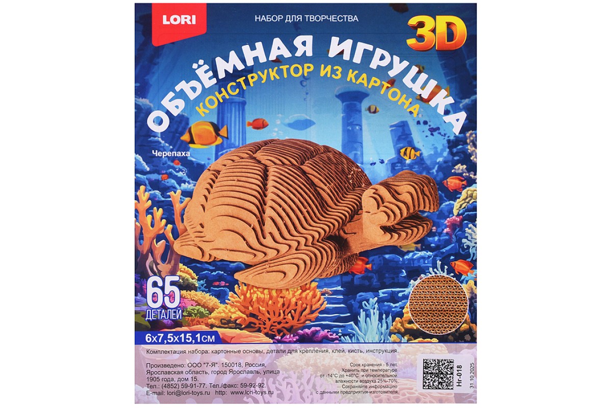 Конструктор из картона. Объёмная игрушка "Черепаха"