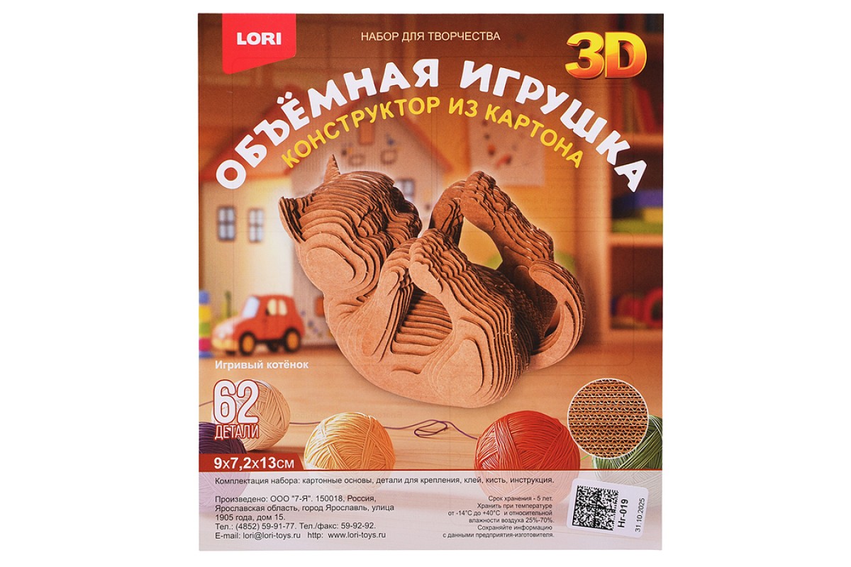 Конструктор из картона. Объёмная игрушка "Игривый котёнок"