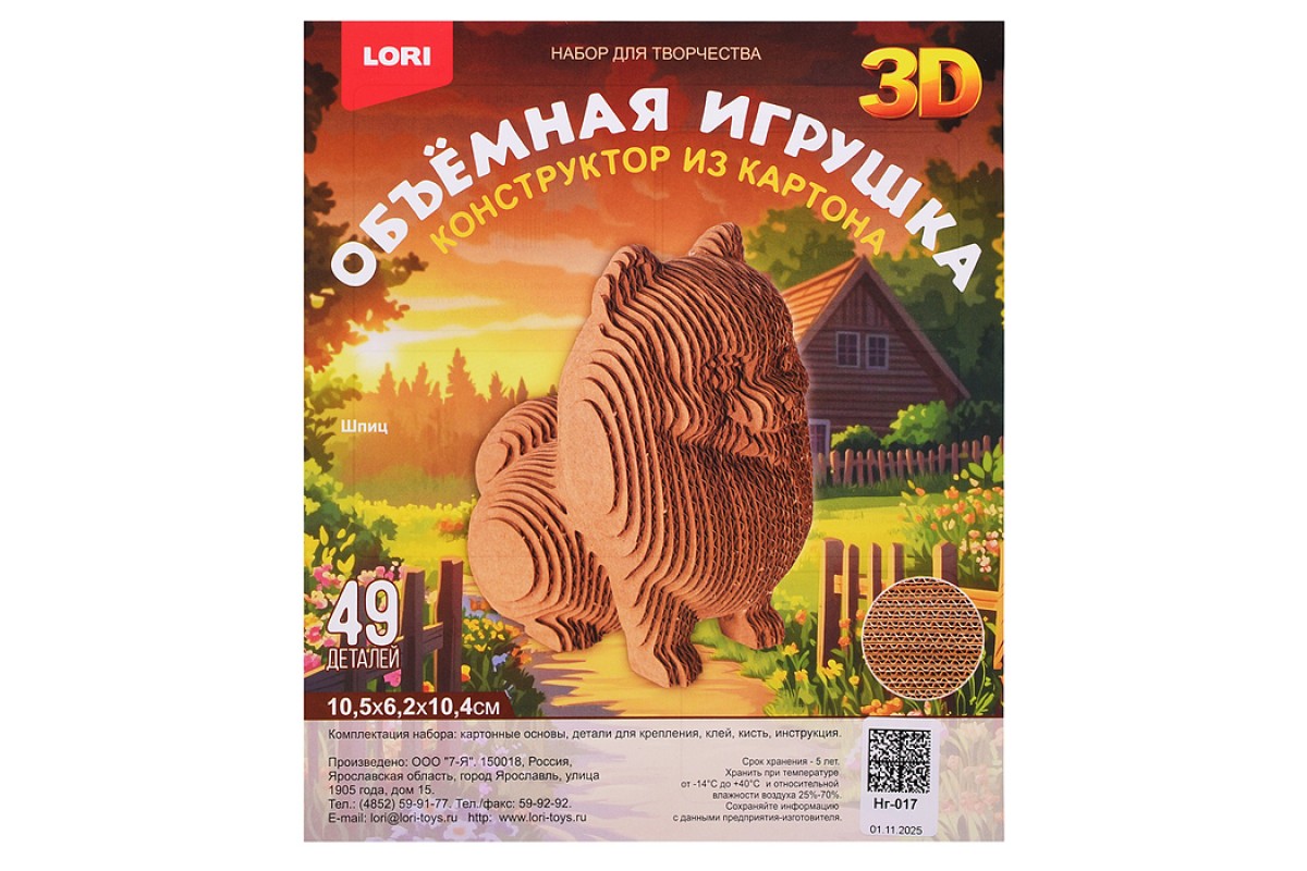 Конструктор из картона. Объёмная игрушка "Шпиц"
