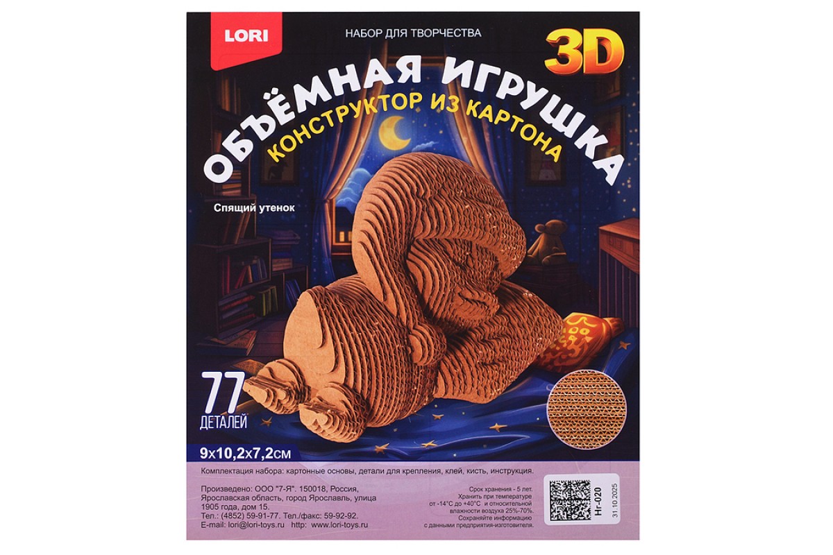 Конструктор из картона. Объёмная игрушка "Спящий утёнок"