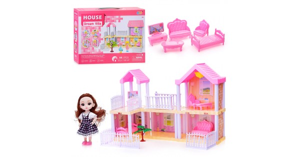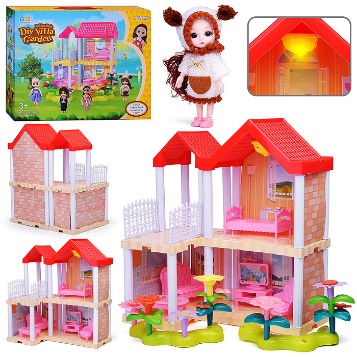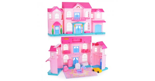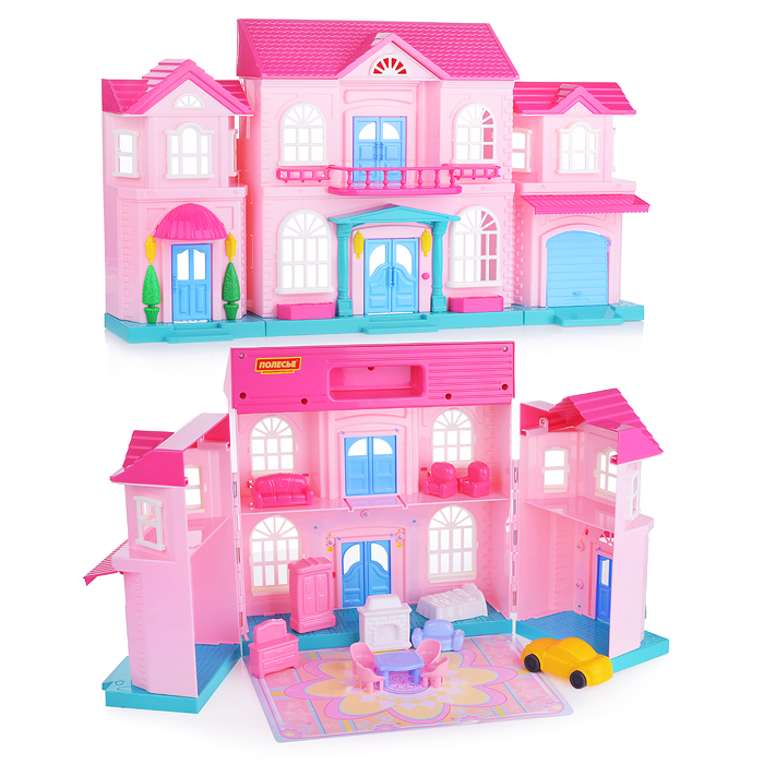 Кукольный домик "София" с набором мебели и автомобилем (14 элементов) (в пакете)