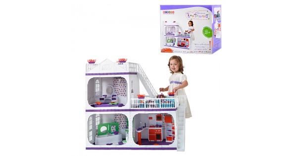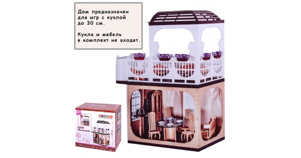 Кукольный домик "Сказка" с набором мебели (12 элементов) (в пакете)