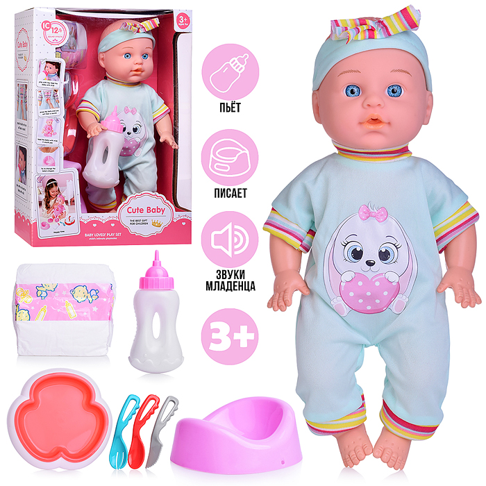 Пупс с аксессуарами "Сьюзи" со звуком, пьёт, писает, в коробке