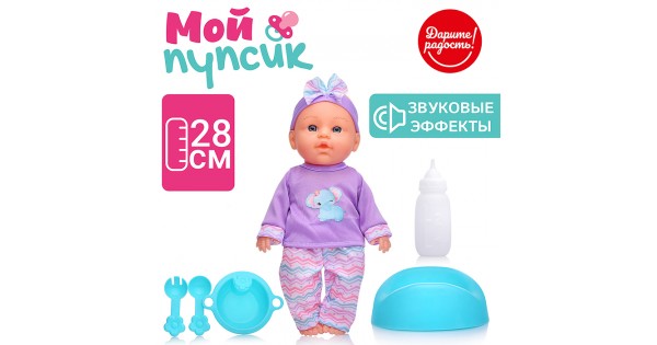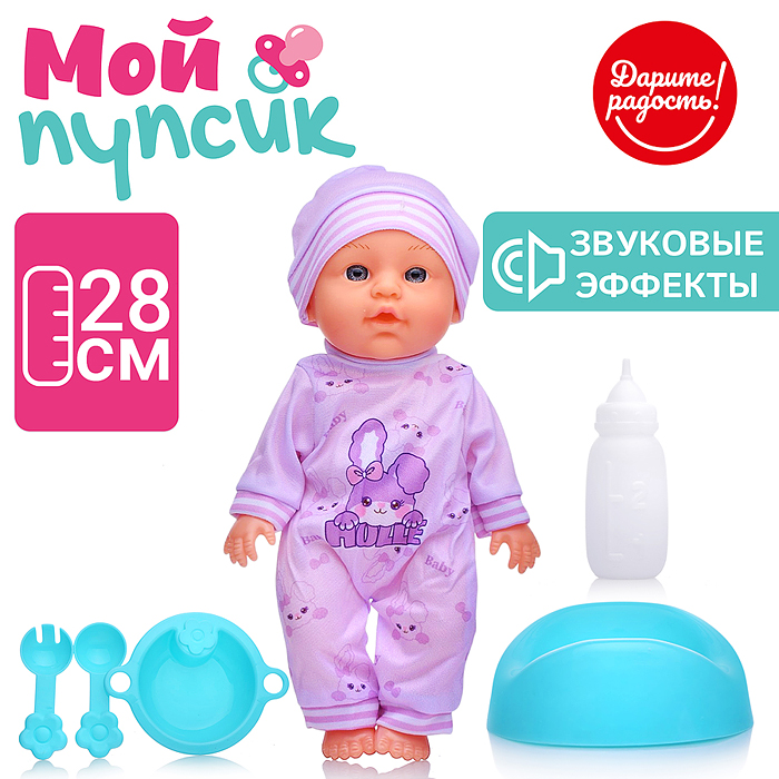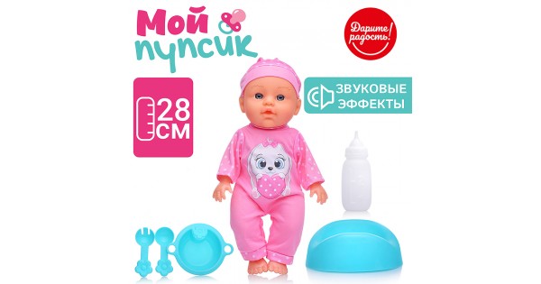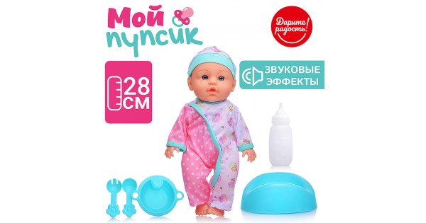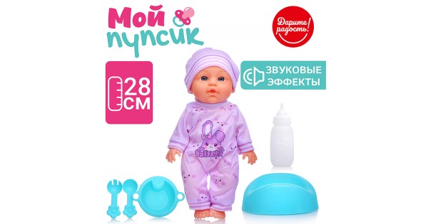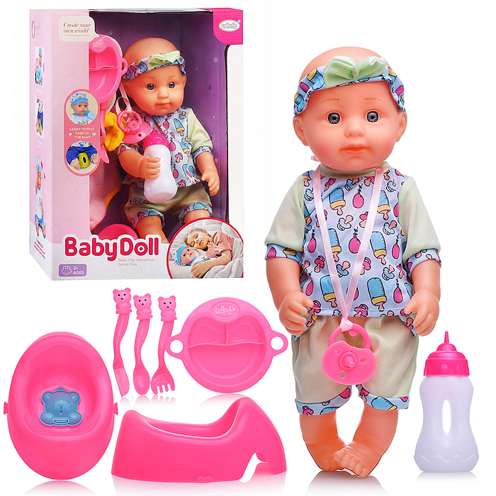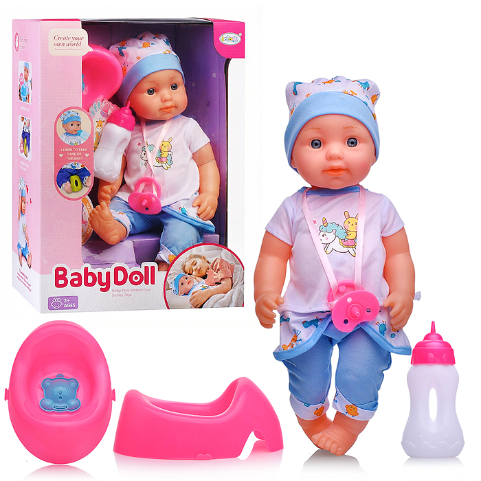 Пупс "Очаровательный малыш" (пьет, писает) с аксессуарами, в пакете