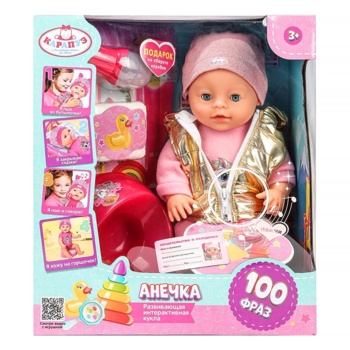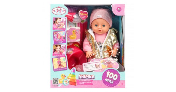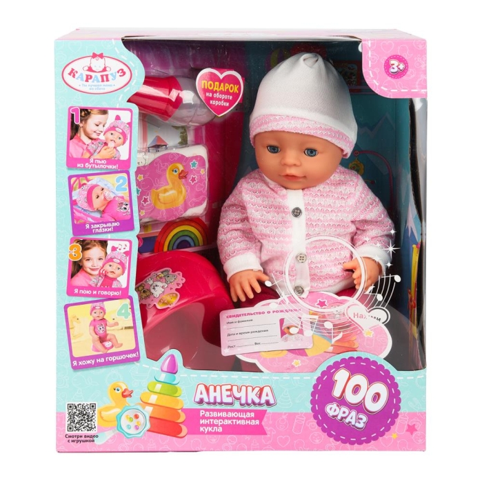Пупс озвуч Шаинский музыка 40 см, пьет, писает, закр. глазки, 4 акс, 100 фраз
