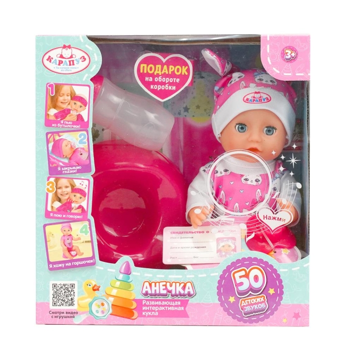 Пупс озвуч Шаинский музыка 30 см, (пьет, писает, закр. глазки, 4 акс, 2000 слов) в коробке