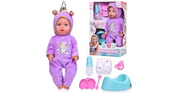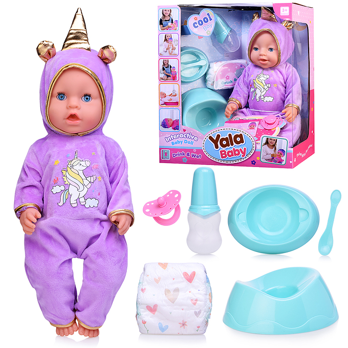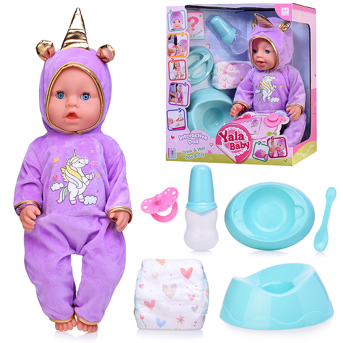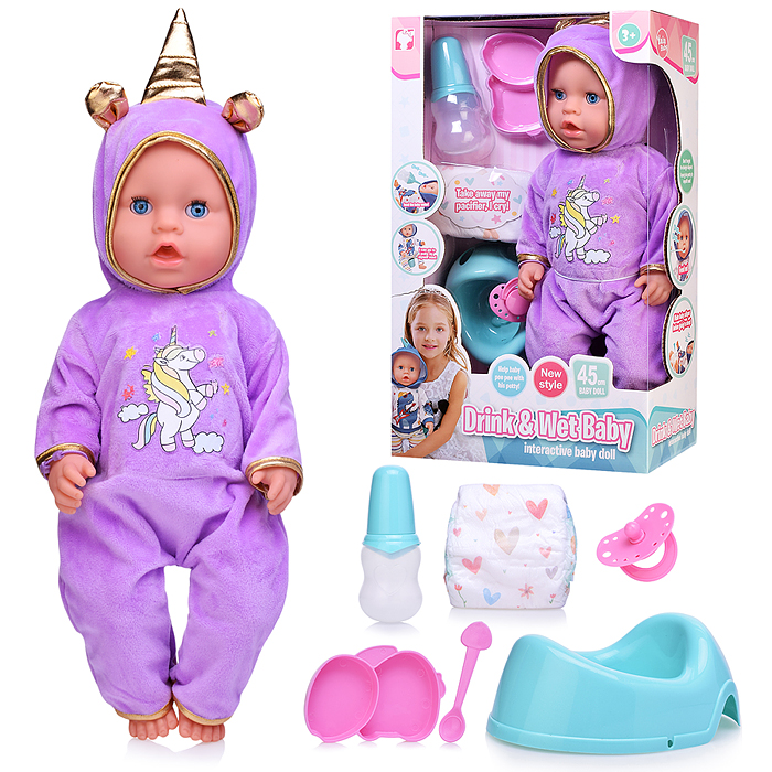 Пупс в костюме единорога (пьет, писает, слезы) с аксессуарами, в коробке