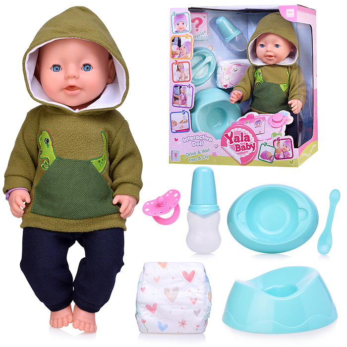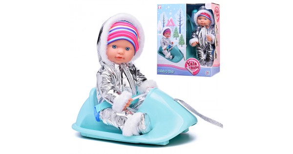 Пупс "Андрейка" на санях (пьет, писает) с аксессуарами, в коробке