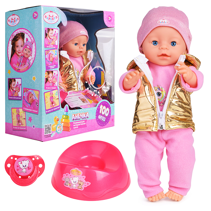 Пупс озвуч Шаинский музыка 40 см, пьет, писает, закр. глазки, 4 акс, 100 фраз