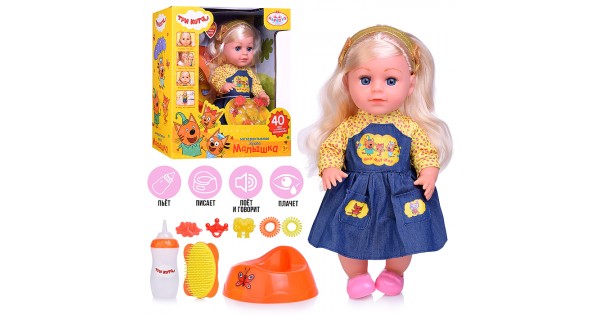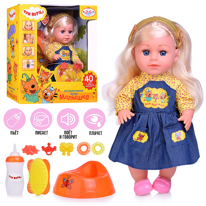 Кукла озвуч "Три Кота" 30см, пьет, писает, плачет, 40 фраз и песен, 8 аксессуаров