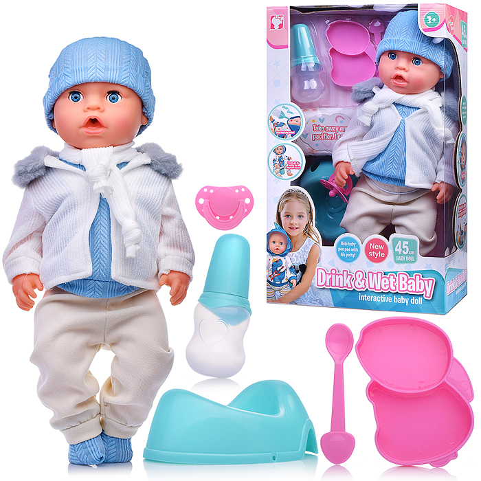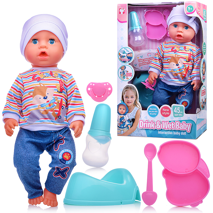 Пупс "Антошка" (пьет, писает, веснушки) с аксессуарами, в коробке