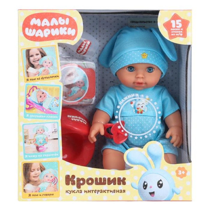 Пупс озвуч "Малышарики Крошик" 30см, 15 песен и стихов из м/ф, фразы