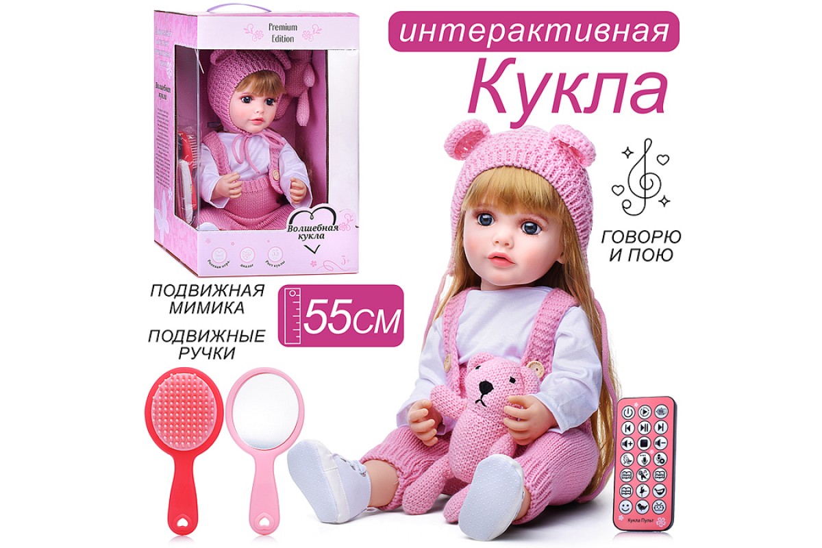 • При нажатии кнопки на груди у куклы, включается режим диалога.