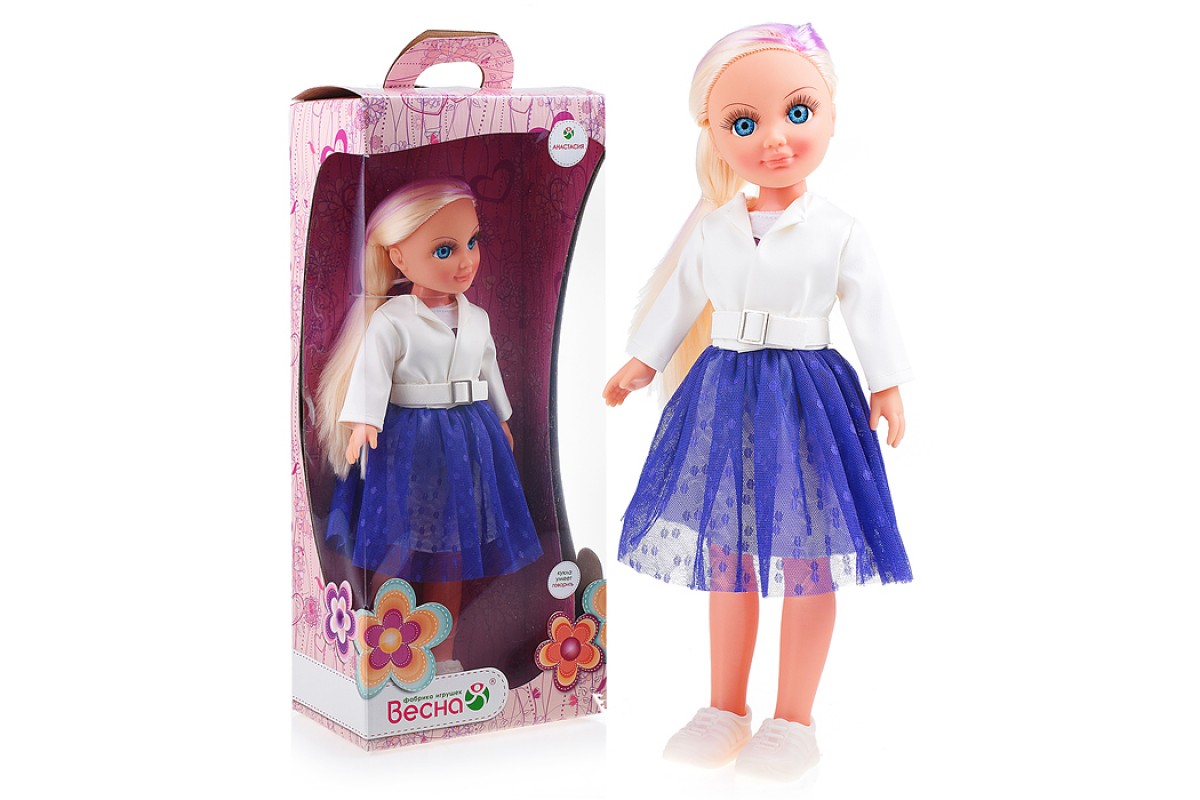 Рост куклы 42 см. Милые выразительные глаза с пушистыми ресницами. Ручки и голова выполнены из эластичного, приятного на ощупь винила, а туловище и ноги из пластмассы. Продуманная конструкция куклы позволяет её сажать, ставить на ножки, переодевать. Прекрасные прошитые волосы из качественного нейлона, похожие на натуральные, можно завивать, расчёсывать, укладывать в разные причёски, меняя образ куклы.