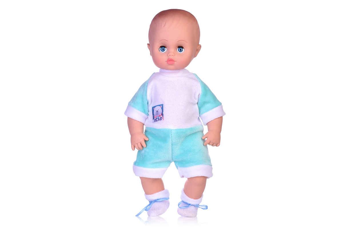 • Возможность переодевать пупса: велюровый комбинезон на липучке и пинетки.