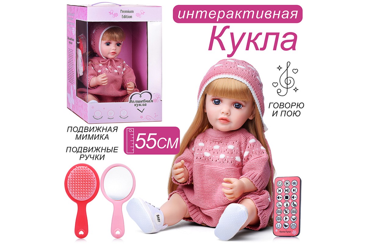 • При нажатии кнопки на груди у куклы, включается режим диалога.