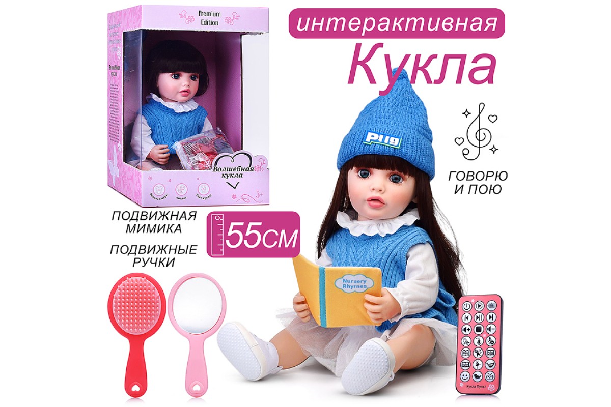 • При нажатии кнопки на груди у куклы, включается режим диалога.