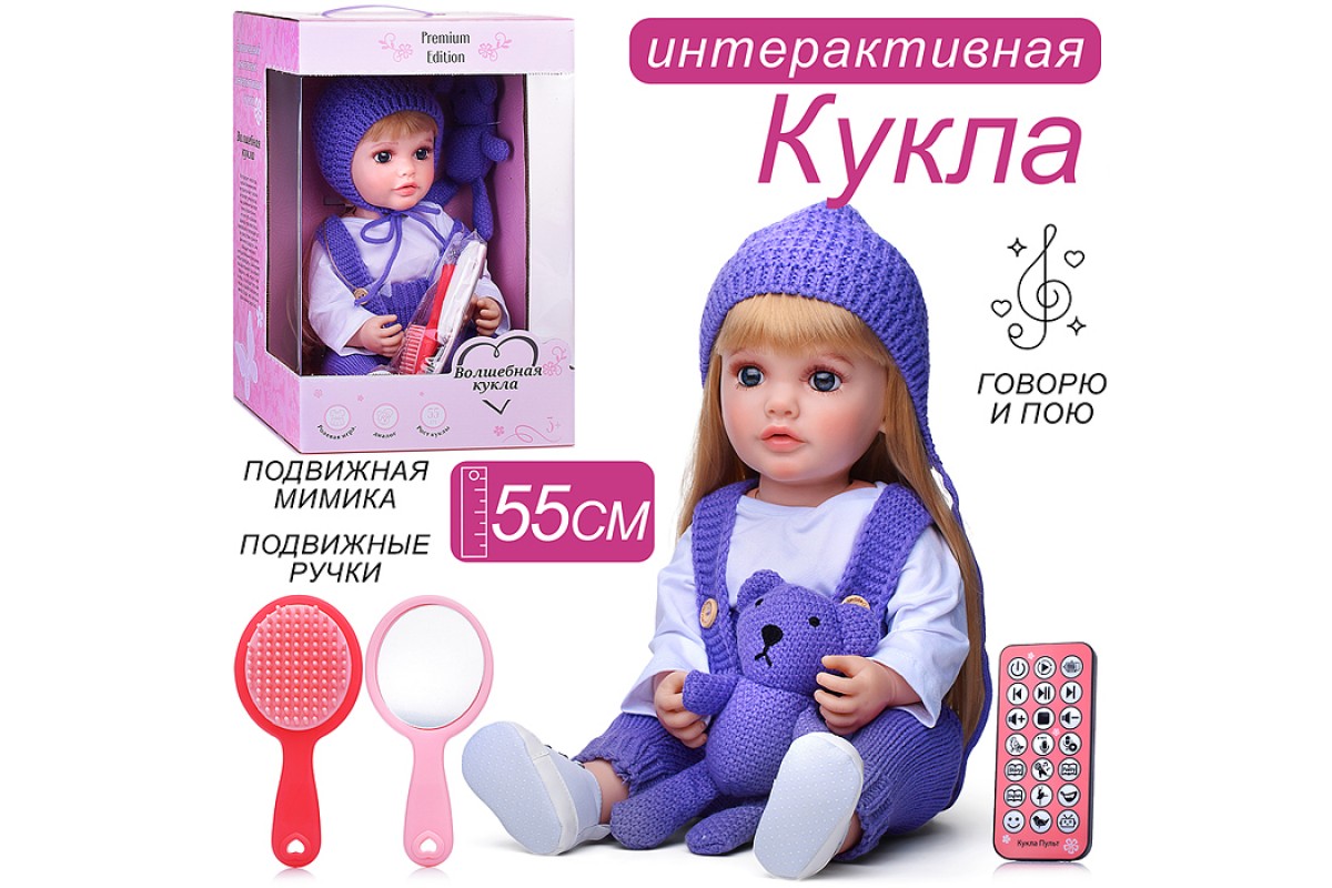 • При нажатии кнопки на груди у куклы, включается режим диалога.