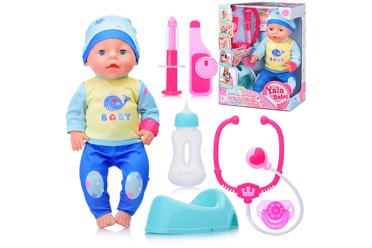 Аксессуары: пустышка, бутылочка, горшок, шприц, градусник и стетоскоп.