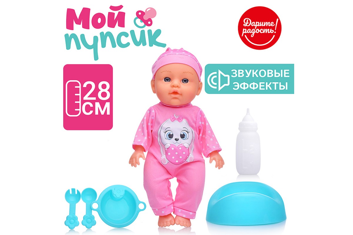 Пупс "Добрый малыш" (пьет, писает) с аксессуарами, в пакете