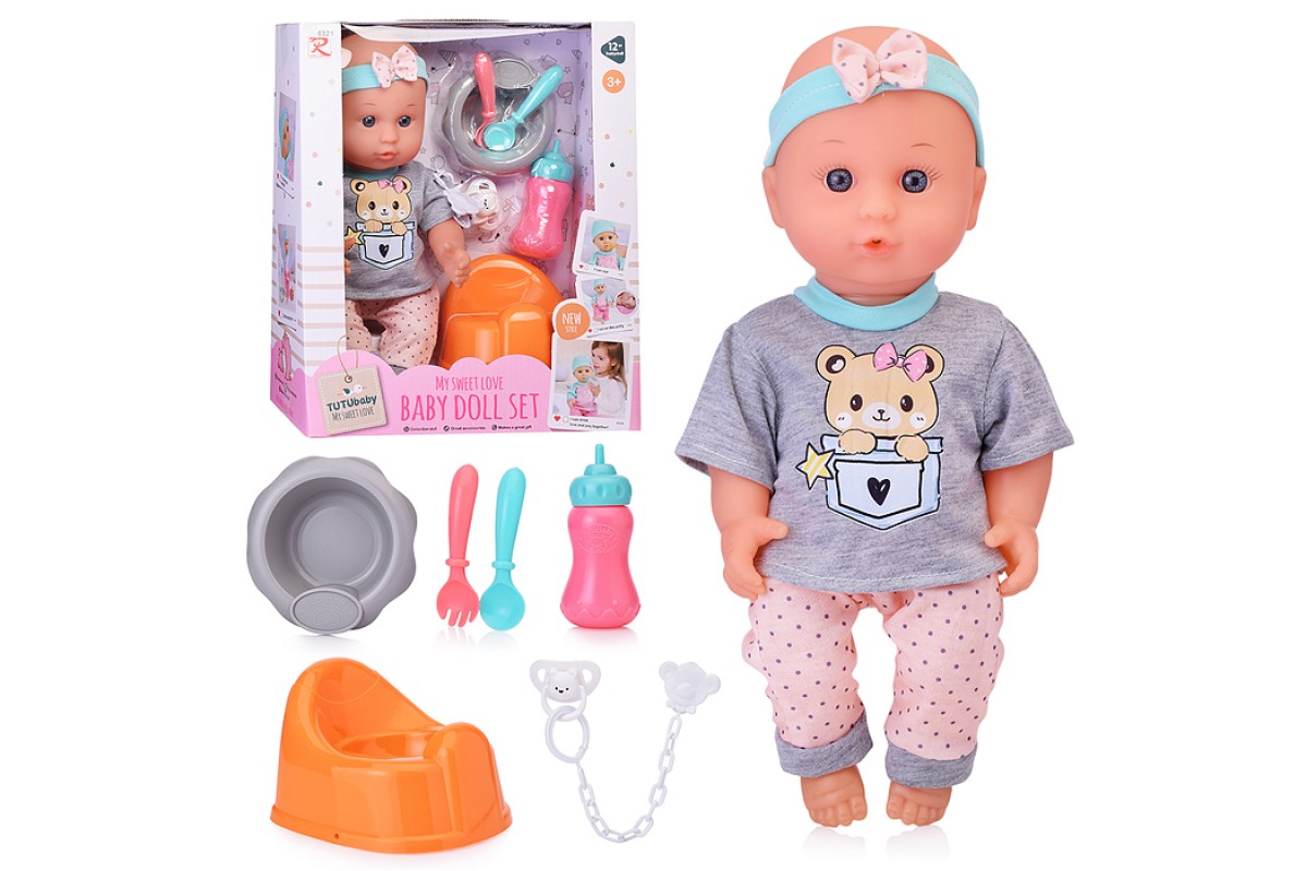 • В комплекте: бутылочка, горшок, соска, тарелка, ложка, вилка.