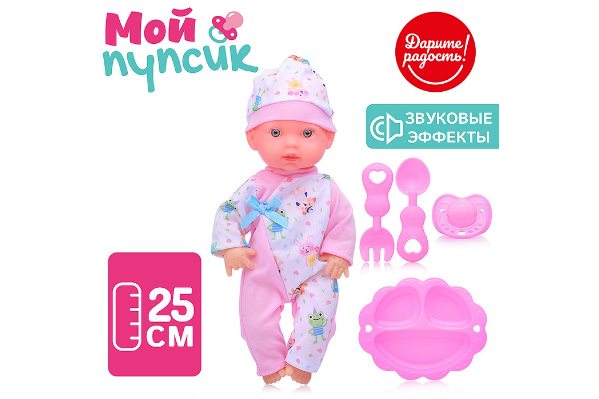Пупс "Мой пупсик" Малышка с аксессуарами, со звуком, в пакете