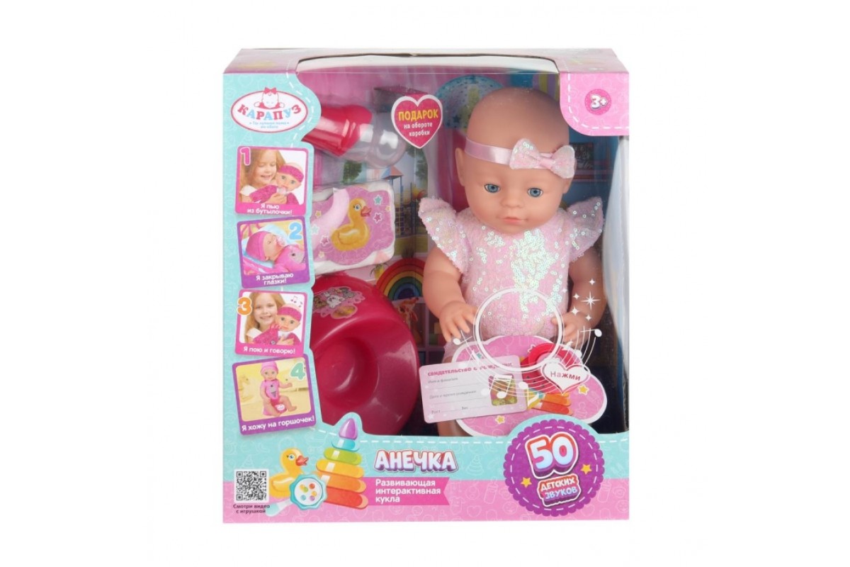 Пупс озвуч 40см, пьет, писает, закр. глазки, 4акс, 50 звуков