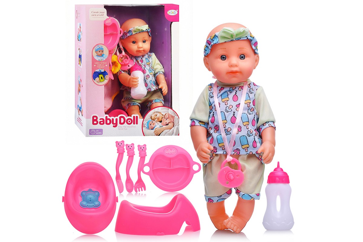 • В комплекте: бутылочка, горшок, соска, тарелка, вилка, ложка, ножик,сменный комплект одежды.