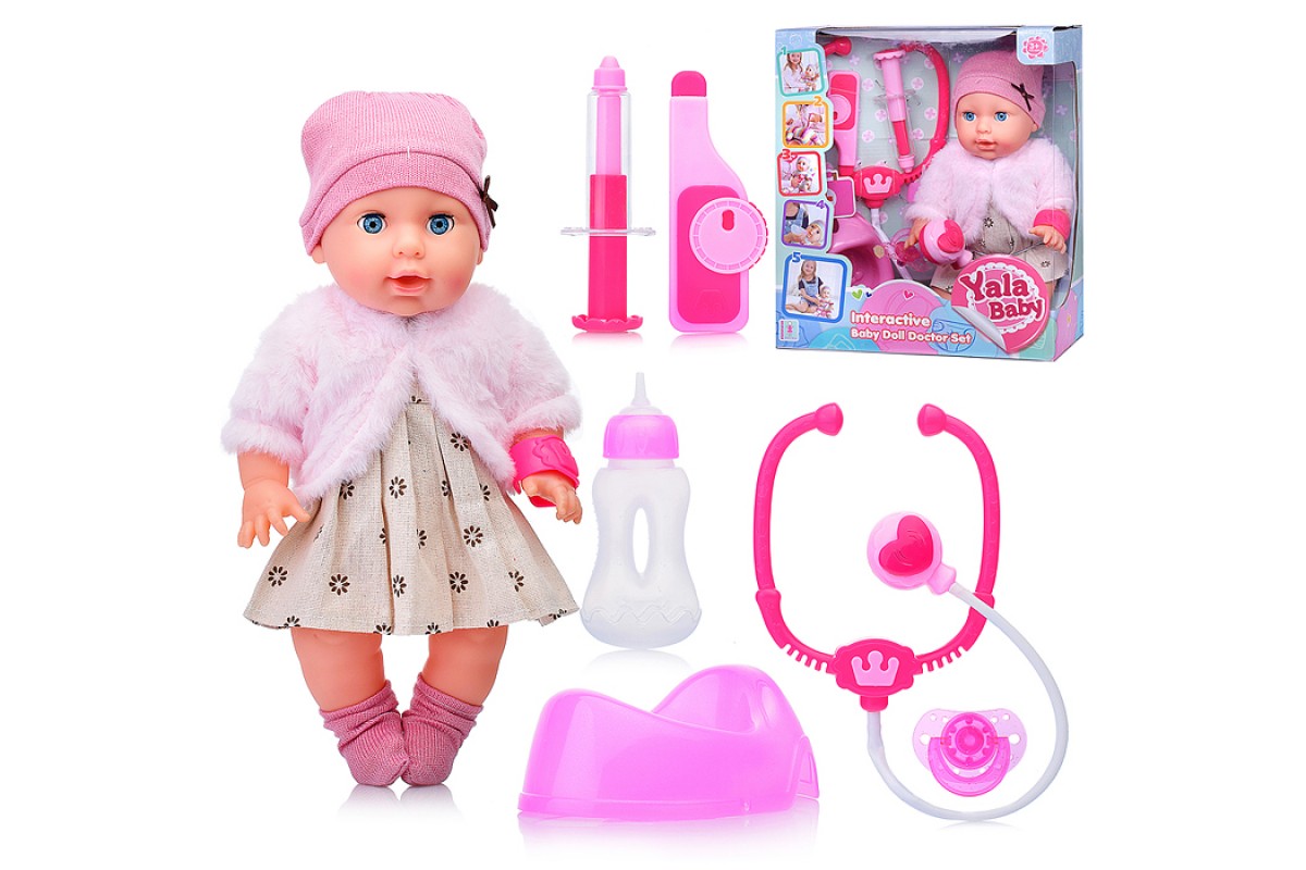 Аксессуары: пустышка, бутылочка, горшок, шприц, градусник и стетоскоп.