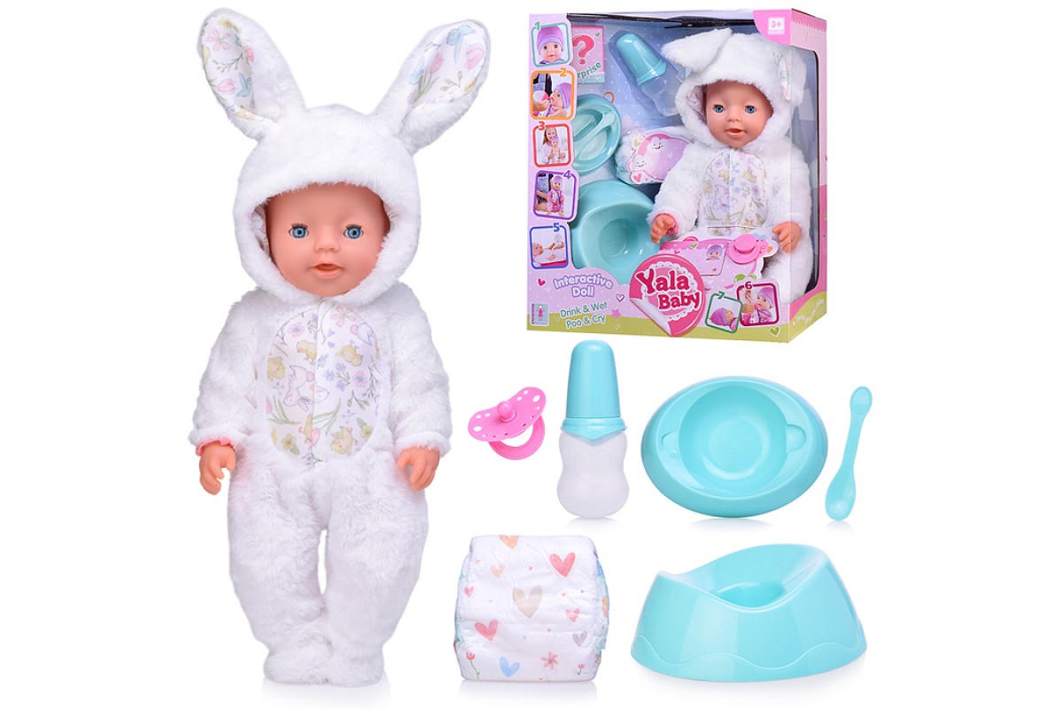 Пупс "Зайка" (пьет, писает, слезы) с аксессуарами, в коробке