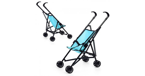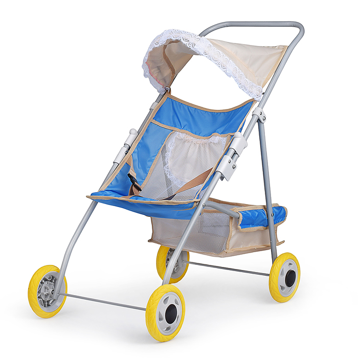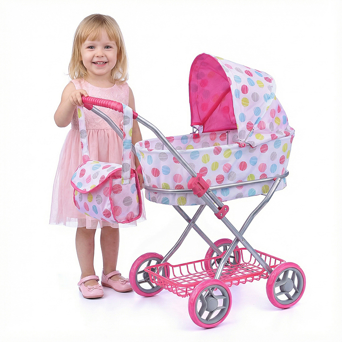 Коляска для кукол, металлическая, складная, прогулочная с капюшоном, с сумкой и корзиной , цве