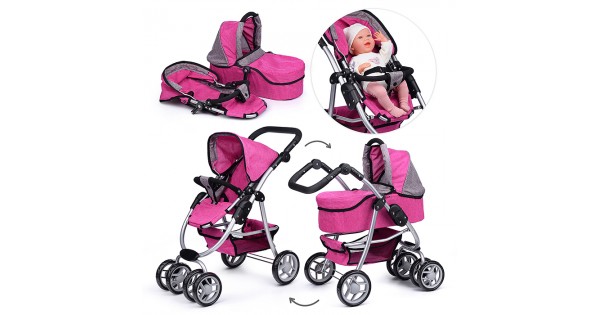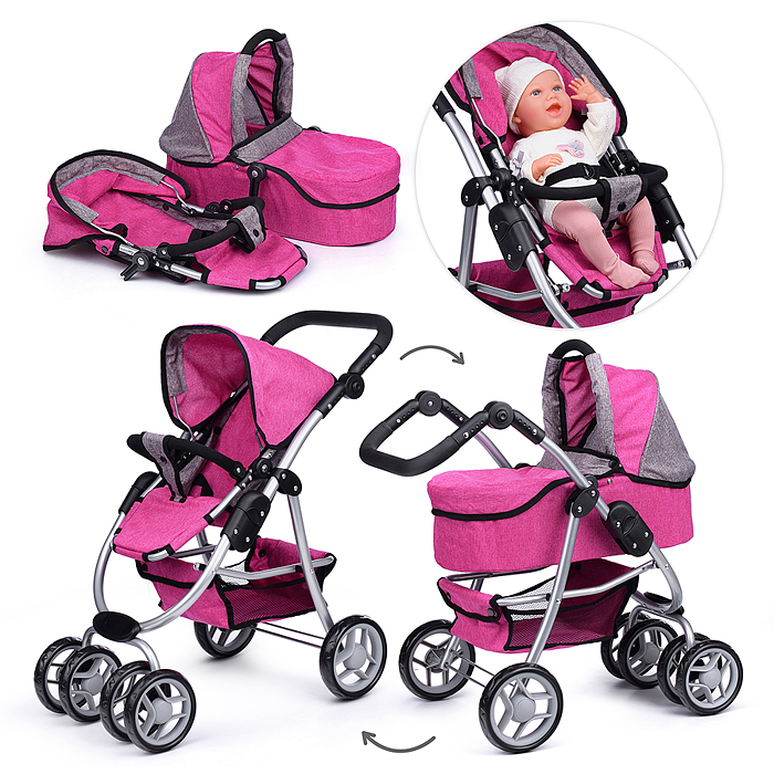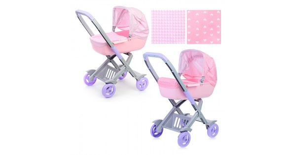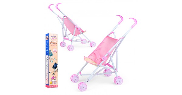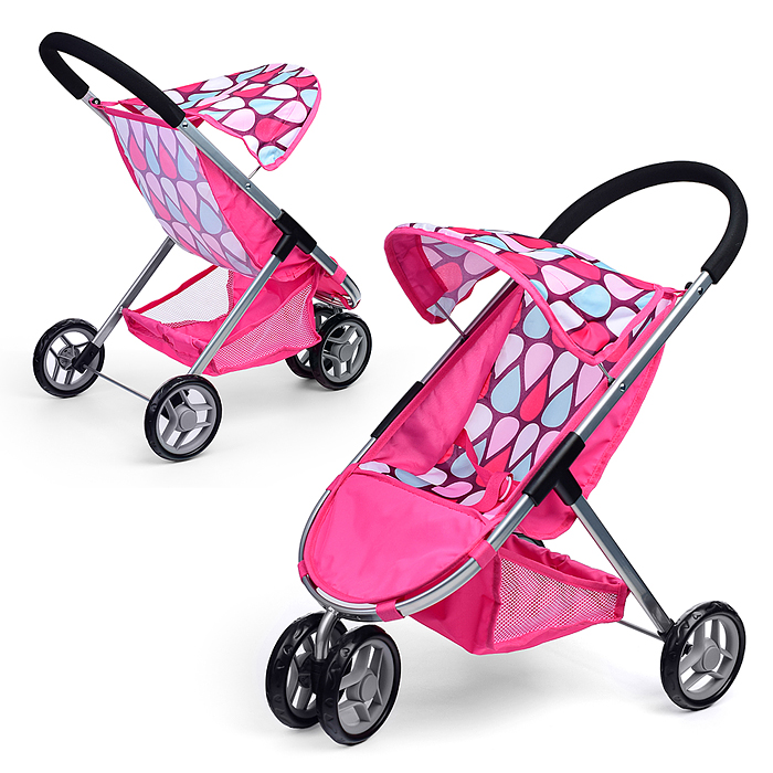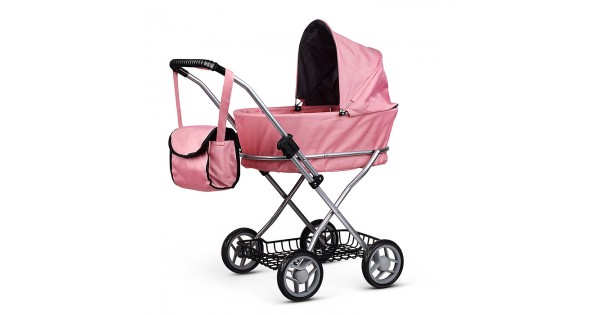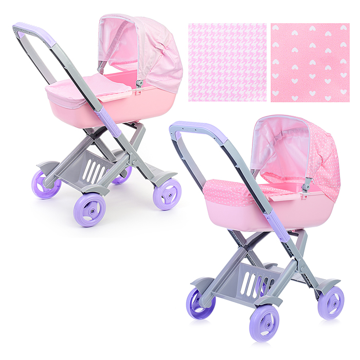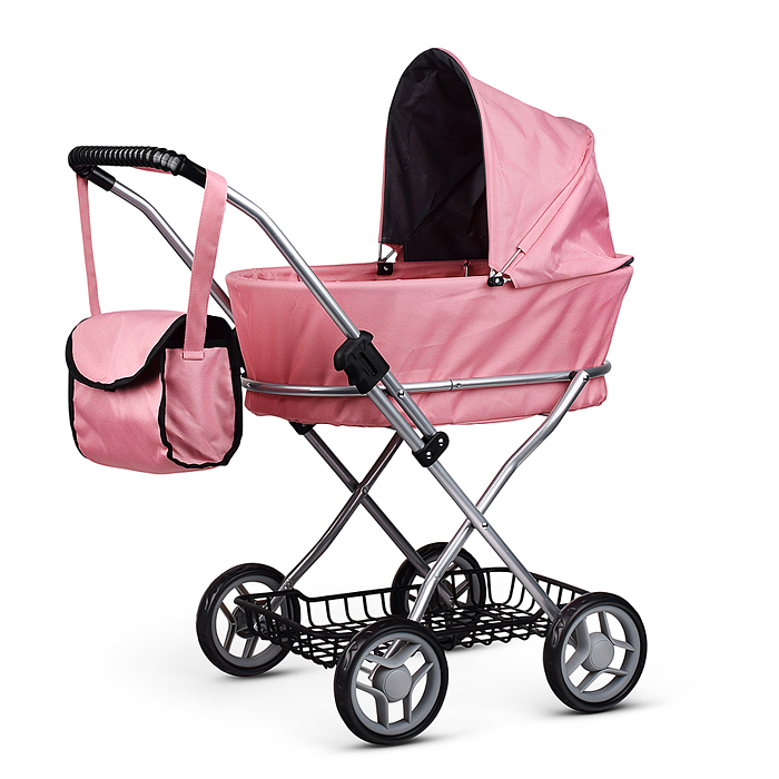 Коляска для кукол, металлическая, складная, прогулочная с капюшоном и корзиной, цвет розовый