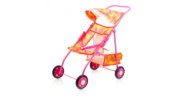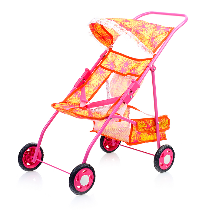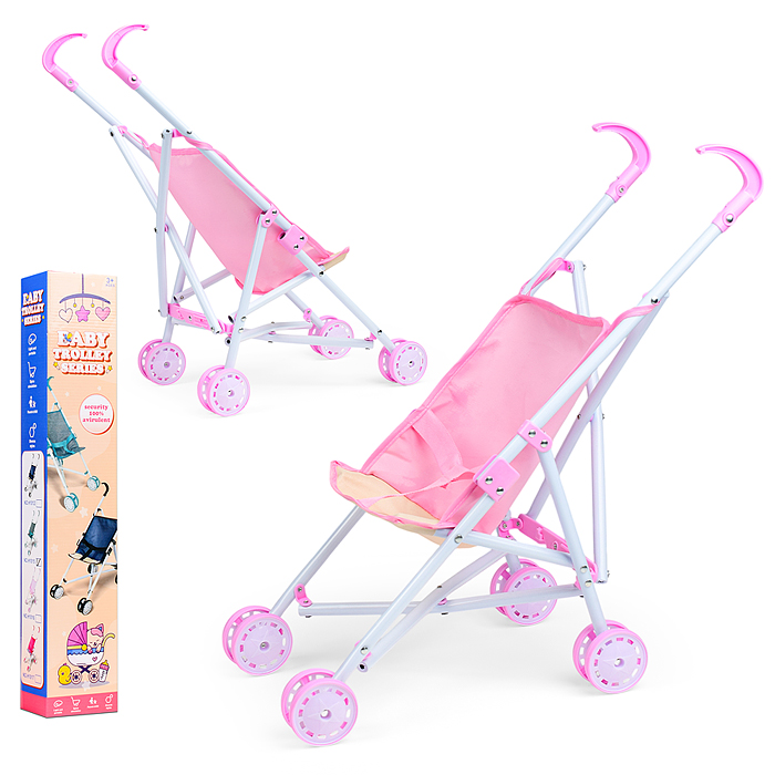 Коляска для кукол металлическая, складная, 3-х колесная, с козырьком, в пакете